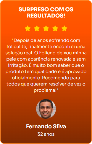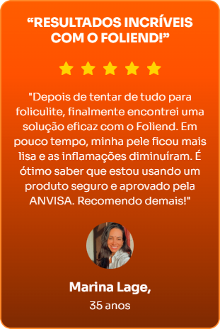 Se, após 90 dias de uso de Foliend, você não notar uma melhora significativa nas manchas e foliculite, nós não apenas reembolsaremos integralmente o valor pago, mas também ofereceremos uma recompensa como agradecimento pelo seu tempo.